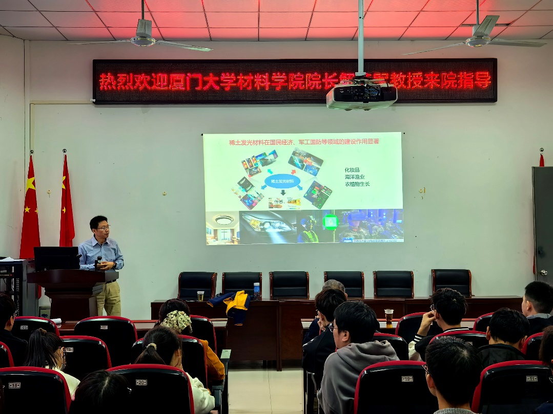 10月24日下午,厦门大学材料学院院长解荣军教授应邀来校作题为“稀土发光材料与发光器件”的学术报告。来自材料科学与工程学院的200余名师生参加了本次活动,报告会由材料科学与工程学院院长闵凡飞主持。