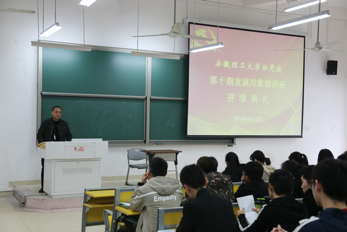 4月13日上午,能源与安全学院和材料科学与工程学院分党校第十期发展对象培训班在明理楼103教室举行开班典礼。能源与安全学院党委书记陈新明、材料科学与工程学院党委副书记范洪喜、学生辅导员、全体2019年党员发展对象参加了本次典礼。典礼由材料科学与工程学院党委副书记范洪喜主持。