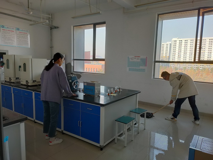 党员们进行实验室卫生整理(摄影:贾送宽)