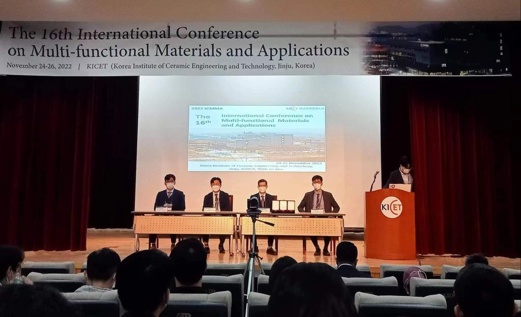 11月25日,由韩国陶瓷工程技术研究院主办,韩国韩瑞大学等单位协办的“第16届多功能材料与应用国际会议”(ICMMA2022)在韩国晋州顺利召开。大会邀请了来自中国、韩国、日本、法国、泰国、印度、马来西亚、越南等国家高校、研究所的100余位知名专家学者做专题报告和学术交流。我校在材料科学与工程学院B306会议室设置了安徽理工大学分会场,材料科学与工程学院、力学与光电物理学院80余名师生代表参加了会议。